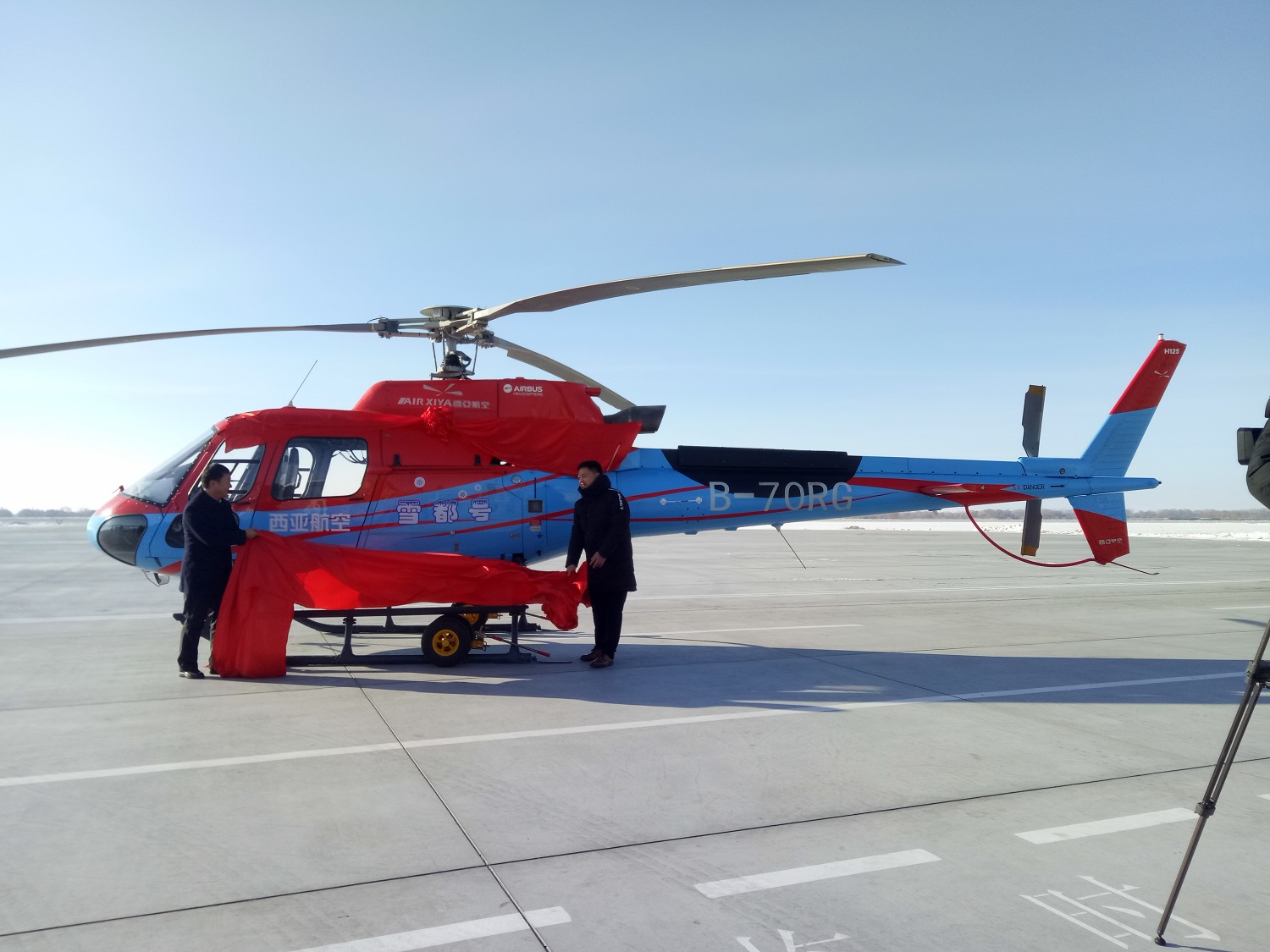隨后,此次項目執飛的“雪都號”(H125)直升機在萬眾矚目之下揭開了神秘面紗,到場嘉賓與游客爭相與“雪都號”合影留念,首航儀式主辦方向前來參加儀式的乘客們贈送了“免費飛行體驗券”并承諾為期三天的免費飛行體驗,首批獲得免費飛行體驗的乘客在一片歡呼聲中登上了“雪都號”,此次首航儀式在“雪都號”的順利首飛中圓滿結束。