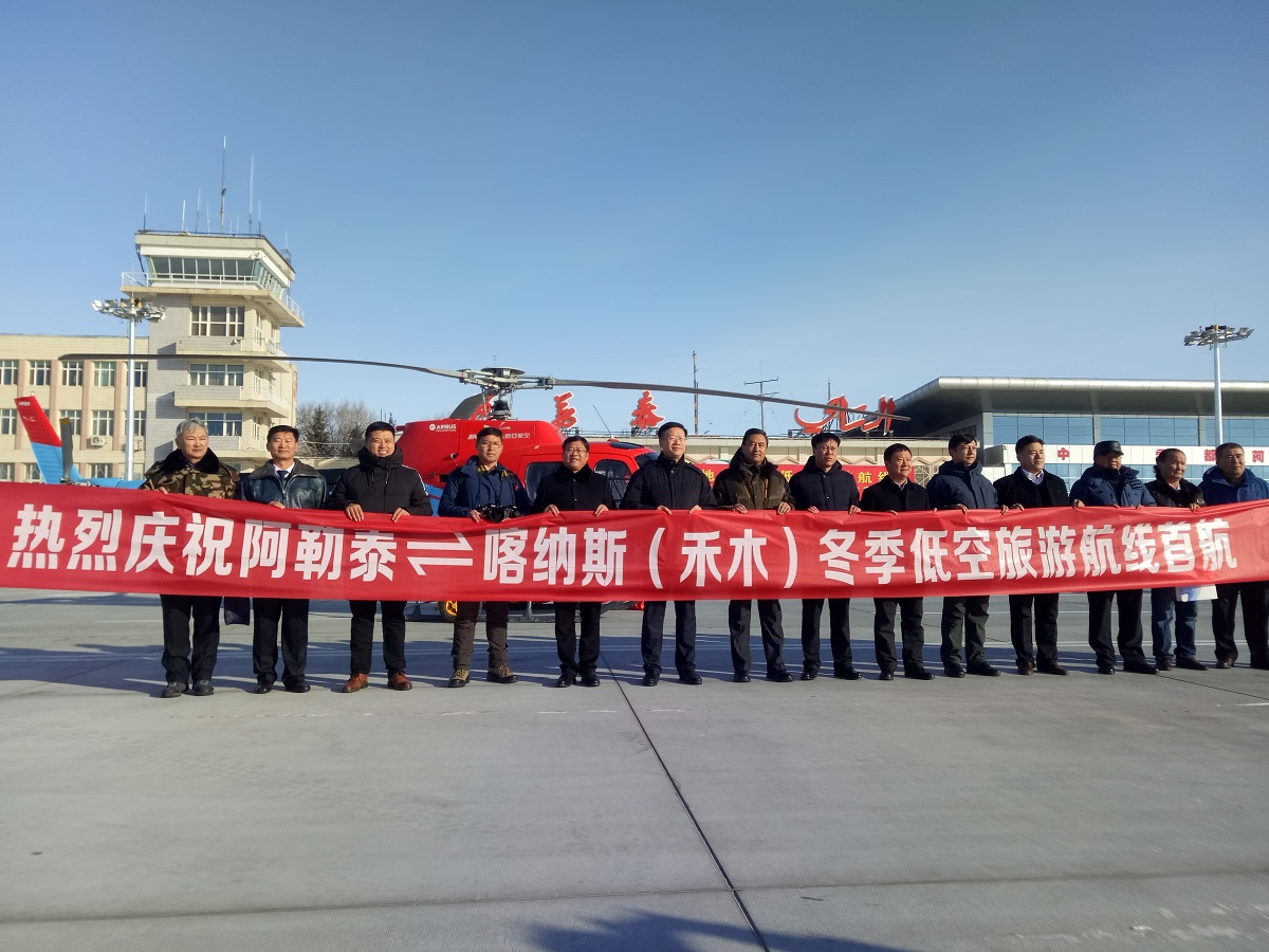 2018年11月20日,由西亞直升機航空有限公司與阿勒泰航空產業投資有限責任公司合作開展的阿勒泰地區冬季低空旅游項目的首航儀式在阿勒泰機場舉行。阿勒泰地委委員陳波、阿勒泰地區行署副秘書長王思勇、阿勒泰地區發改委、財政局、旅游局、交通局、阿勒泰市委等相關領導出席了本次首航儀式。此次阿勒泰冬季低空旅游項目開通的航線選用具有超高性能且適合在極端天氣飛行的H125機型執飛。